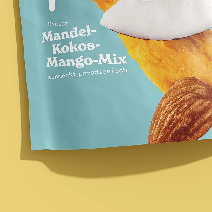 Die gerösteten Mandelkerne gepaart mit unseren knackigen Bio-Kokos-Chips und den getrockneten Mango-Streifen geben dir nicht nur einen ordentlichen Energie-Kick, sondern beamen dich gedanklich direkt auf die nächste Tropeninsel.